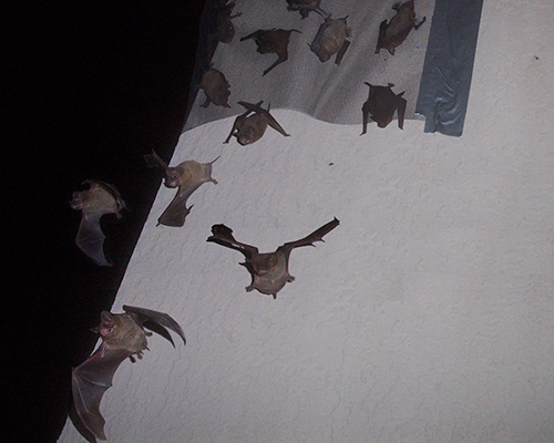 Of the 1,300 species of bats globally, about 50 species live in North America. There are no wild flying foxes or vampire bats in the US. These species can range in size, although most in the US are not much bigger than a few inches. These guys can roost in the strangest of places and get through smaller spaces than you likely realize.